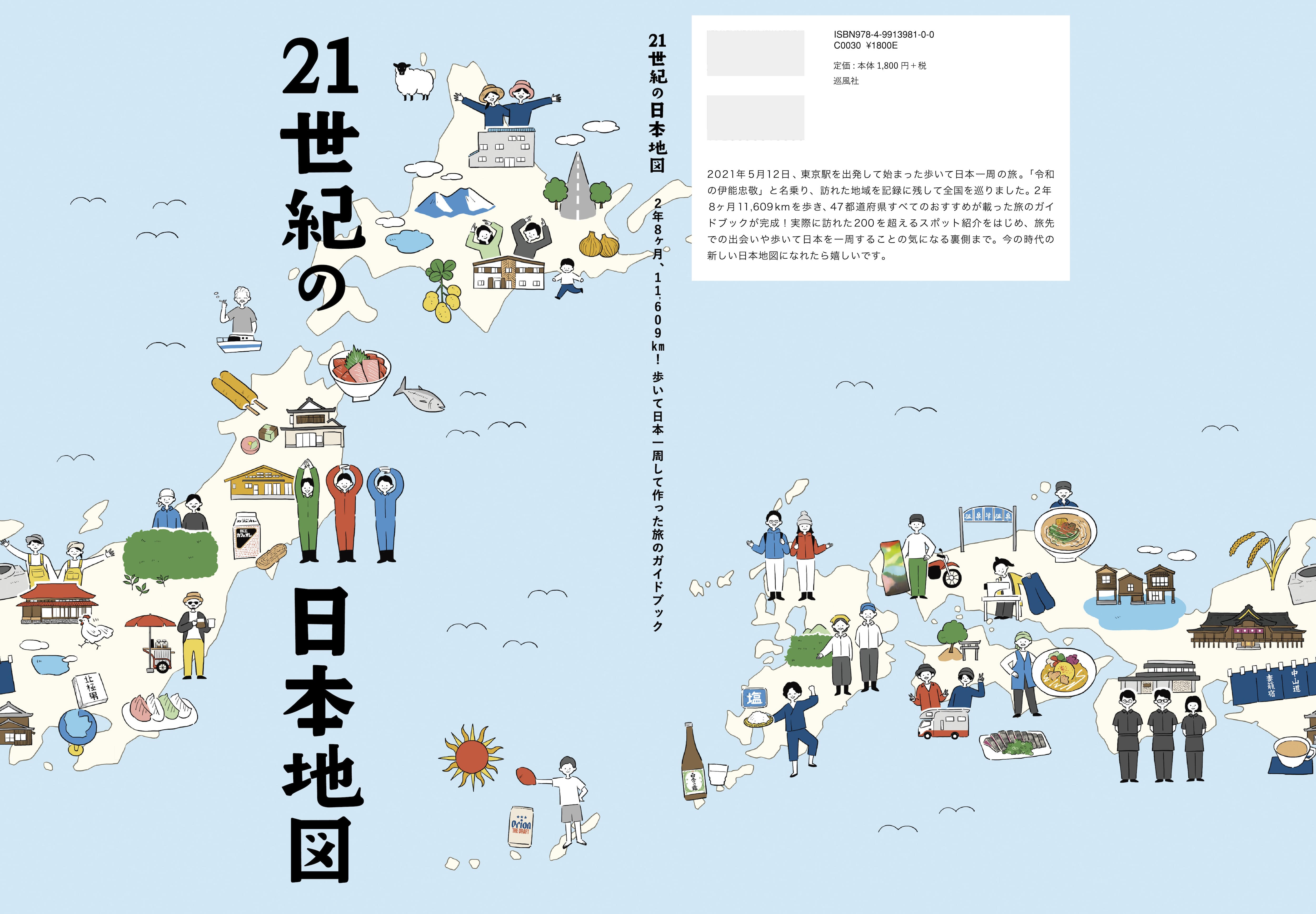 2021年5月12日、東京駅を出発して始まった歩いて日本一周の旅。「令和の伊能忠敬」と名乗り、訪れた地域を記録に残して全国を巡りました。2年8ヶ月11,609kmを歩き、47都道府県すべてのおすすめが載った旅のガイドブックが完成!実際に訪れた200を超えるスポット紹介をはじめ、旅先での出会いや歩いて日本を一周すること気になる裏側まで。今の時代の新しい日本地図になれたら嬉しいです。